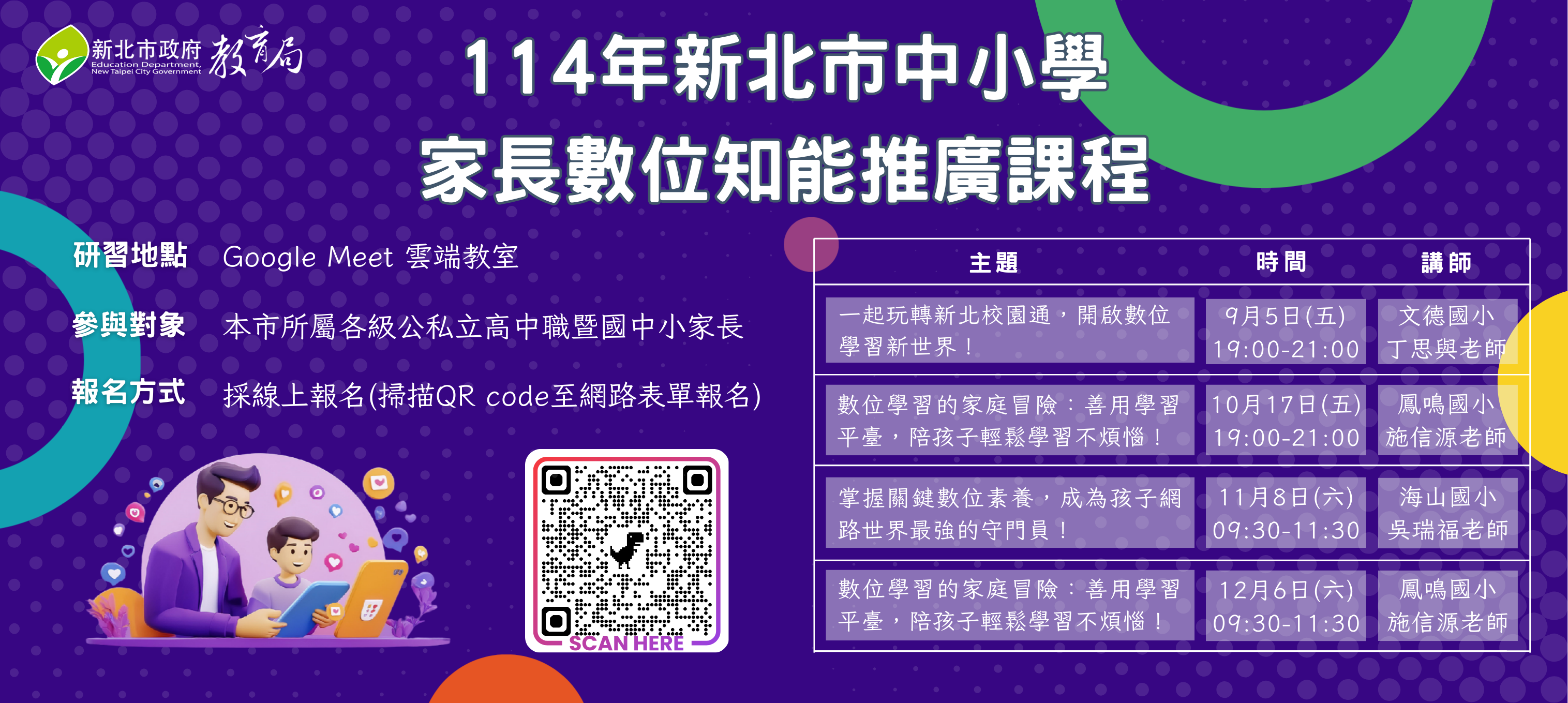 📆場次一:114年9月5日(星期五)下午 19:00-21:00📱一起玩轉新北校園通,開啟數位學習新世界!